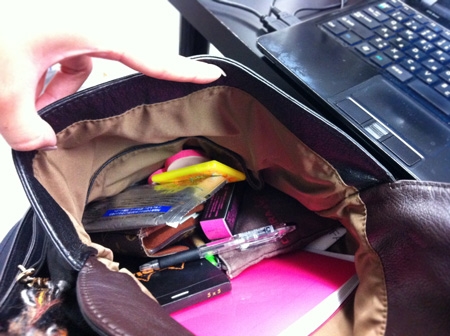 3つ目ですが、カバンの中身が整理整頓されていなくて汚い女です。